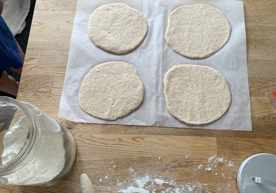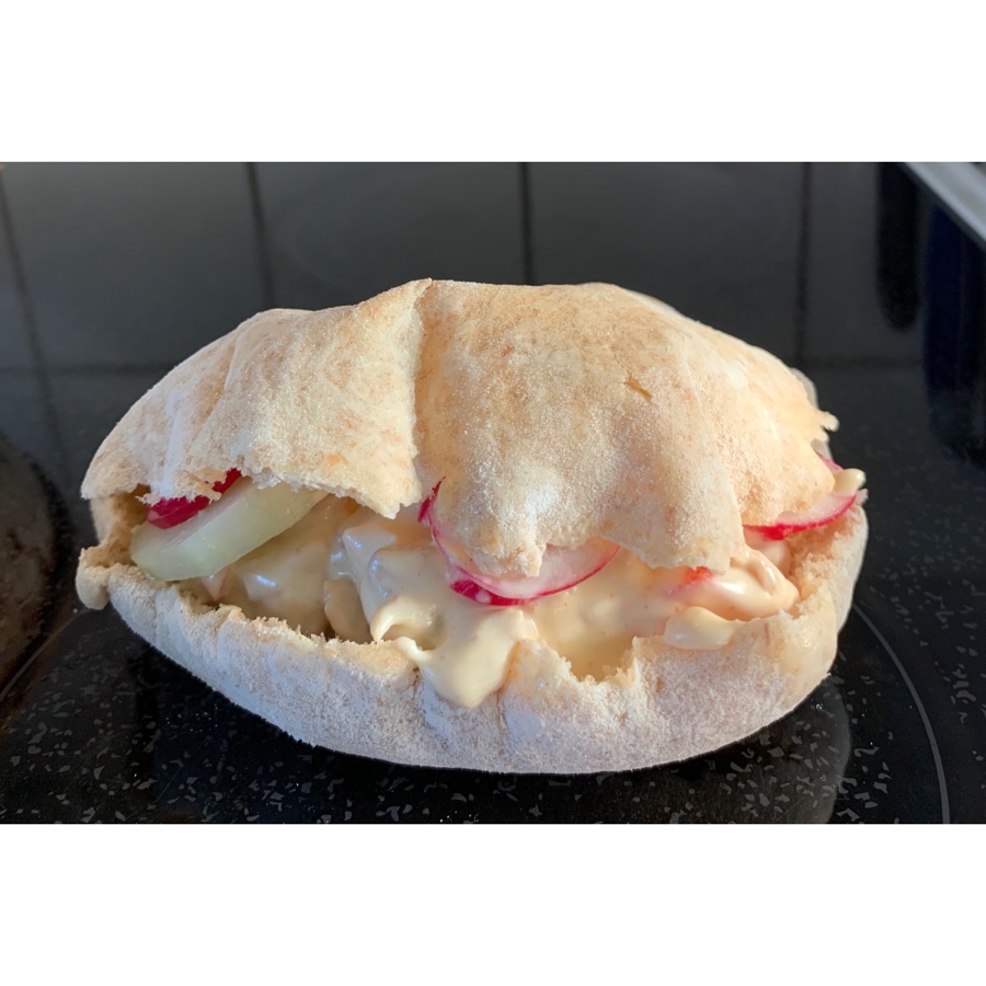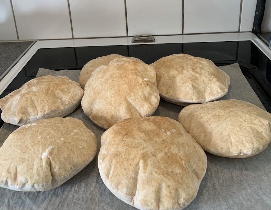 Hembakade pitabröd blir sjukt goda! När jag gör en deg blir det åtta stycken normalstora bröd. Jag brukar fylla dem med en röra på kyckling eller tonfisk. (Idag blev det kyckling).