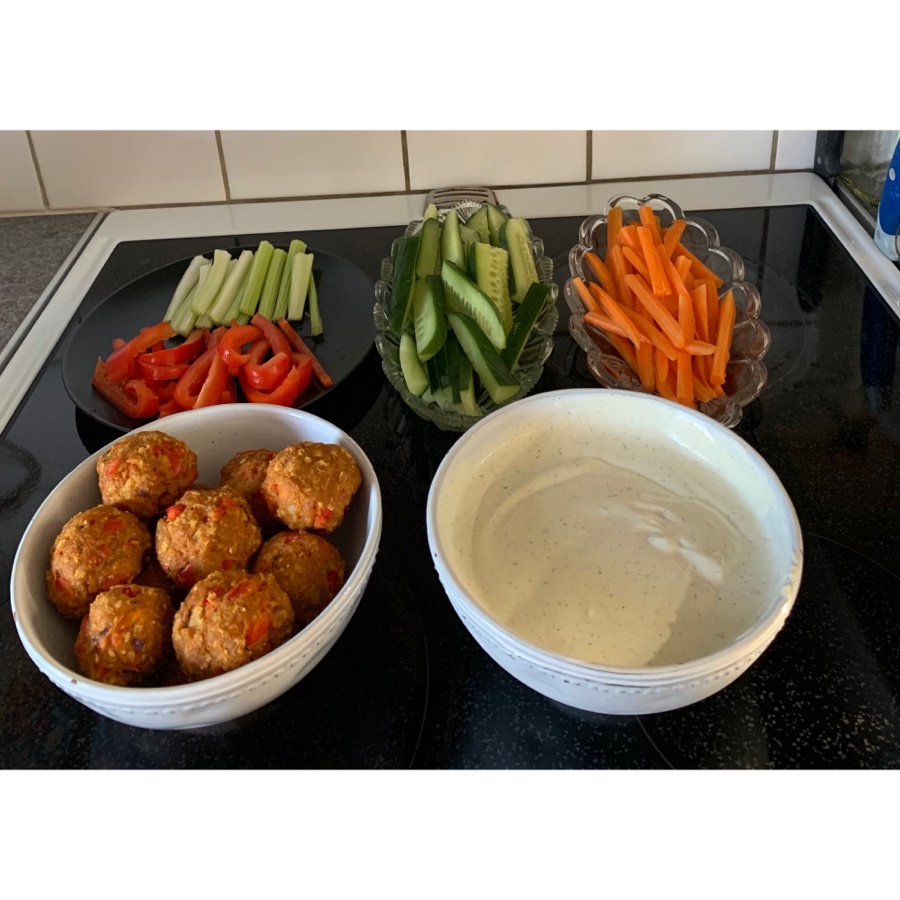 Skiva upp de grönsaker du har hemma och dippa dom med. Idag tog jag gurka, morötter, röd paprika och selleri.