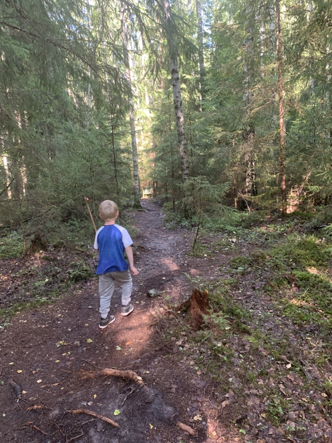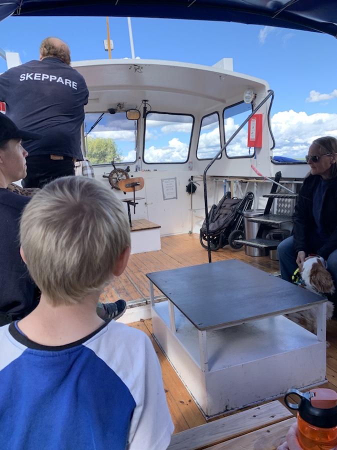 Idag var det faktiskt soligt och varmt så då passade vi på att göra en utflykt. Vi åkte med båten Plaskus ut till Alntorpsö.