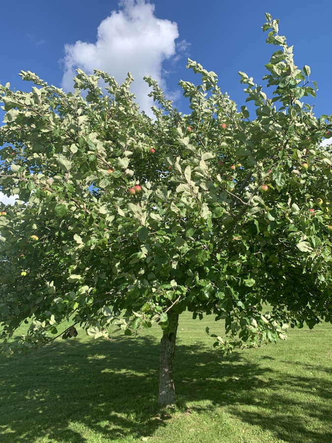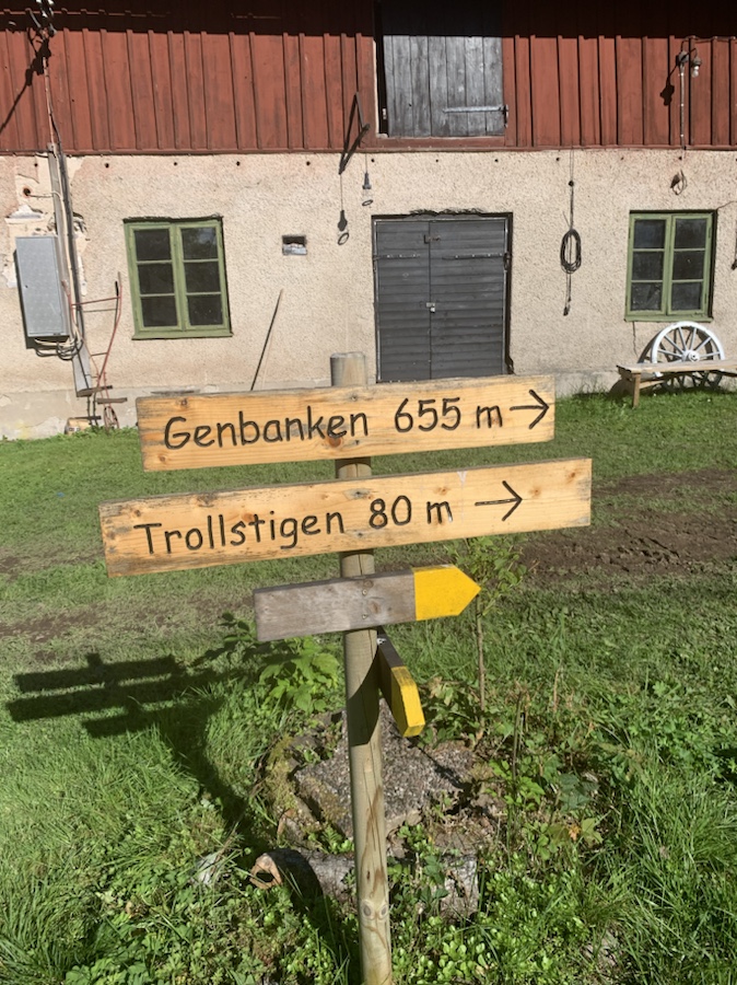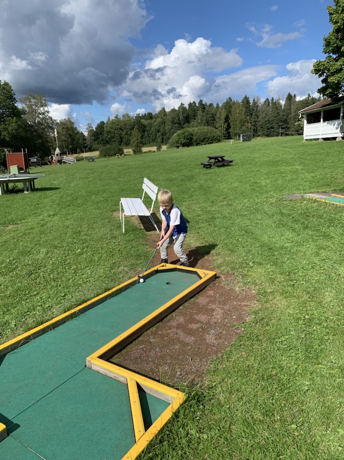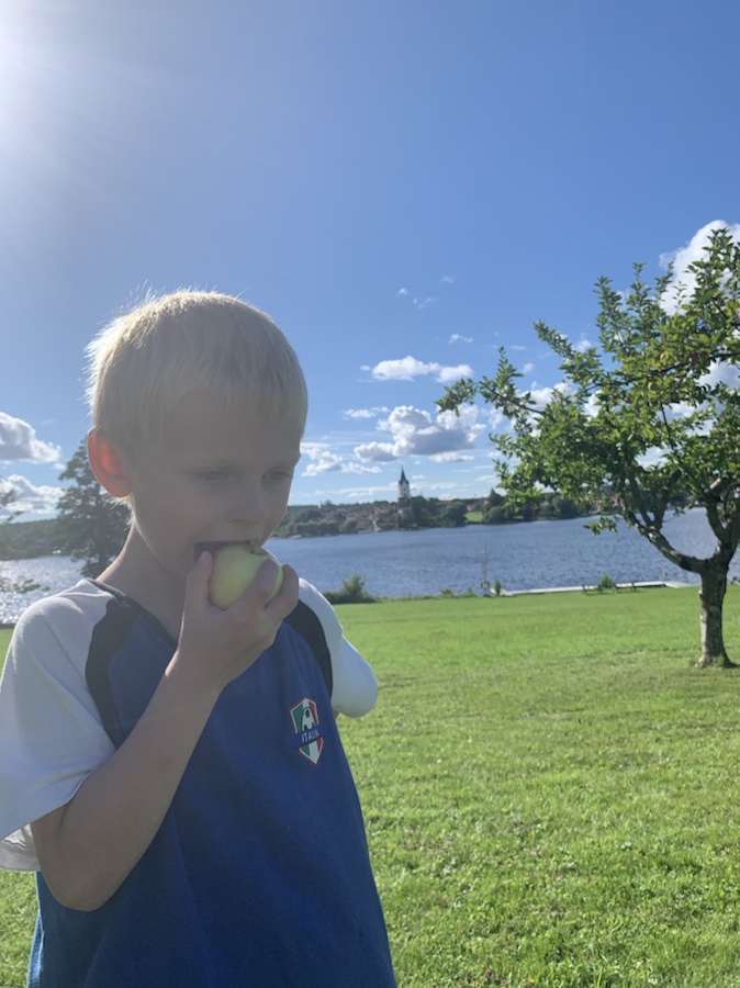 På Alntorpsö har dom genbanken. Det är en samling av ca 160 äppel- och päronsorter. Vi hann tyvärr inte promenera dit den här gången utan fick nöja oss med de träd som fanns vid minigolfen. Cazpian fick tag i ett gott äpple. 😊