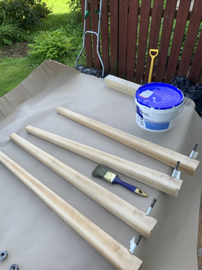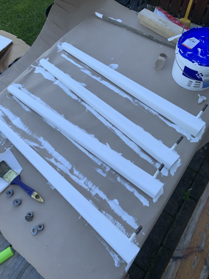 Sen fick vi ett klaffbord av en granne som skulle flytta och nu är det dax för förvandlingen! Nille har slipat ner det och nu har jag börjat grunda med vit färg.