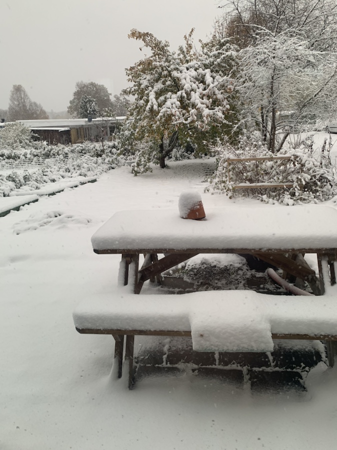 Imorse när vi vaknade hade det kommit rätt mycket snö! Tråkigt för Cazpian som just blivit sjuk med hög feber. Han ville så gärna ut och leka i snön!