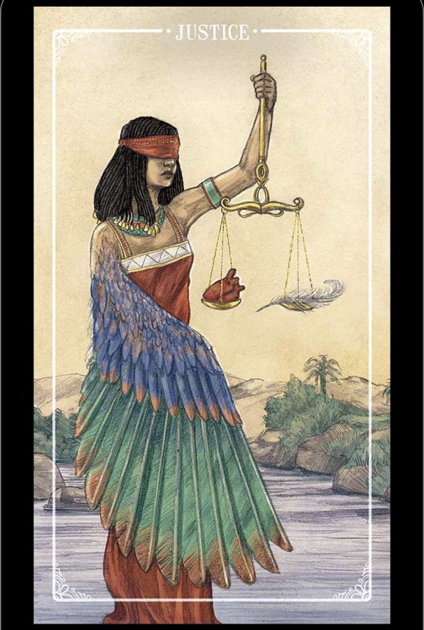 Kortet representerar rättvisa, hederlighet, ärlighet, sanning och lagen. Du ställs till svars för dina handlingar och kommer dömas därefter. Om du har agerat enligt ditt Högre Jag och för andras högsta bästa så har du inget att oroa dig för. Men om du inte har det kommer du tvingas stå för dina handlingar. Om det här får dig att bli nervös så ska du veta att kortet inte är så svart eller vitt som du kanske tror. Ett mått av medkänsla och förståelse följer med kortet så fast du kan ha gjort eller sagt något som du ångrar så kommer du behandlas rättvist och opartiskt. Var redo att ta ansvar för dina handlingar och att ta de efterföljande konsekvenserna.