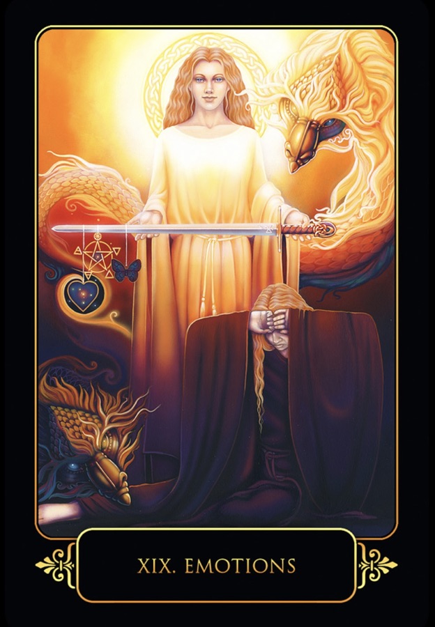 Kortet tyder på att det finns ett behov av att lära sig att känna igen och förstå sina känslor. Det symboliserar vikten av att jobba med och hantera sina känslor – inte att kontrollera dem utan att förstå och acceptera dem samt låta dem flöda och skifta helt naturligt.