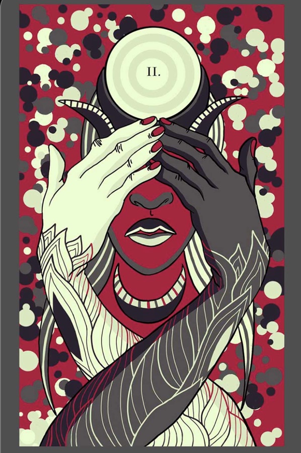 Översteprästinnan symboliserar intuition, mystik och sensualitet blandat med sunt förnuft.