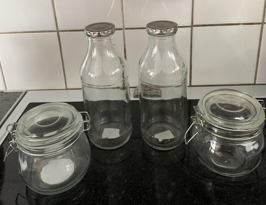Idag besökte vi en loppis och en secondhandbutik och vi lyckades hitta fyra stycken. Vi hade hoppats på fler men utbudet var väldigt skralt. För flera år sen svämmade loppisarna över av glasburkar! Men inte nu (vi har letat i Örebro med utan att hitta någon). Jag pratade med en granne idag som sa att det verkade vara inne med glasburkar nu, så kanske därför de är svårare att hitta. Tilläggas bör att vi inte vill betala överpriser för begagnade glasburkar. Vissa secondhandbutiker tar överpriser för dom och då står vi över (då kan en lika gärna köpa nya på IKEA).