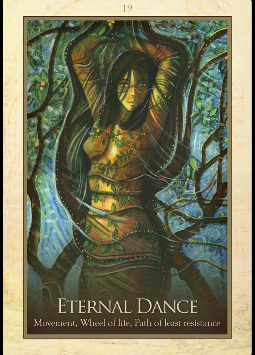 Kvinnan på bilden är ett med naturen och helt i rytm med Moder Jord och hennes växlande årstider. Hon står inte emot naturens krafter utan rör sig graciöst med vinden. Men även fast hennes kropp svajar med vinden så blåser hon inte bort från sin väg för hennes fötter är fast förankrade i jorden. Hon förblir balanserad, förtjänt och redo.