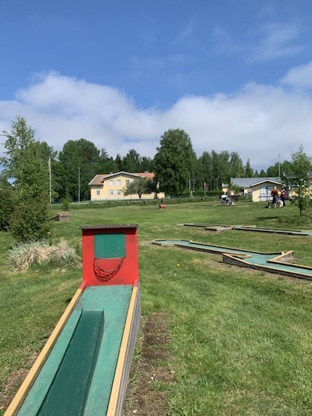 Igår skulle vi ta en promenad så Cazpian fick cykla lite, och när vi kom till Nobelparken såg vi att det var både loppis och gratis minigolf. Då blev vi tvungna att stanna till för att spela en runda. Sen tog vi vägen runt ridskolan och hem.