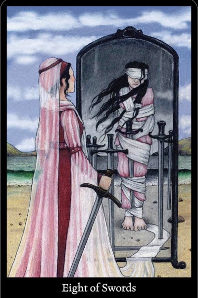 Det här kortet kommer upp när du gör en helt naturlig djupdykning ner i mörkret för att uppnå läkning. Det du behöver göra är att ställa de svåra frågorna. Gör sånt du normalt sett inte brukar göra. Försök tänka på nya sätt. Ha viljan att låta allt förändra sig till det bättre genom att först släppa taget om hur saker och ting är just nu.