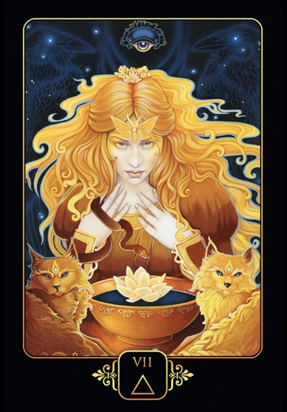 Kortet representerar behovet av att aktivt utveckla och lita på din egen intuition och dina instinkter just nu. Se dig omkring. Observera. Prata med korten regelbundet och hedra sanningarna som avslöjas genom att gå dit din intuition leder dig.