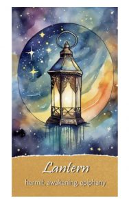 Lyktan på kortet representerar kontakt, ditt inre jag och en högre förståelse. Lyktan är ljuset som lyser upp vägen framåt under en mörkare period. Tänk på ditt inre ljus som din kontakt med ditt Högre Jag. Du kan lätt förlora den här kontakten genom att tänka för mycket, överanalysera, oroa dig eller att försöka kontrollera saker och ting i ditt liv alldeles för mycket.