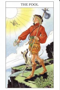 Mer bokstavligt kan kortet betyda att du beter dig som Narren själv (acting like a fool) genom att bortse från konsekvenserna av dina handlingar. Du kanske inte ser hur farlig situationen är som du befinner dig i. Här kan det vara precis så som bilden visar – du tittar åt ett helt annat håll samtidigt som du faller över klippkanten.