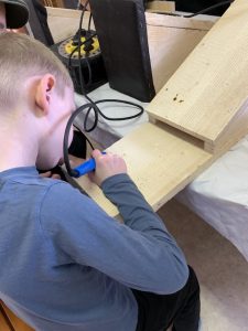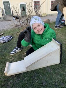 Igår hängde vi med scouterna och Cazpian fick bygga en fladdermusholk. Han fick använda både skruvdragaren och häftpistolen helt själv! Stolt kille! Sen fick han även skriva med brännpenna på holken.