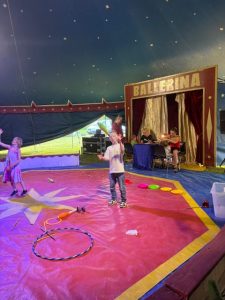 Efteråt hade dom cirkusskola för alla barn där dom fick prova på att gå på lina, jonglera, rocka rockring och annat.