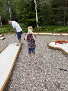 Vi hade en jättetrevlig och rolig midsommarafton! Jag, Nille och Cazpian åkte först till Café Skogen i Örebro där vi spelade minigolf, åt grillad korv och glass.