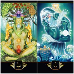 Kort 1 handlar om nyfikenhet, utforskande och att ifrågasätta sina perspektiv. Det är som att stå på en plats i livet där du börjar vända och vrida på gamla tankesätt, testa nya idéer eller överväga andra vägar. Här handlar det inte om stress eller brådska, utan mer om medveten upptäckarlust – att öppna upp sinnet och försöka förstå världen (eller sig själv) på ett djupare eller mer flexibelt sätt. Kort 2 visar på att något skaver känslomässigt. Det kan vara en obalans, överkänslighet, att du tar på dig andras känslor för mycket eller att du försöker hålla upp en lugn fasad fast det faktiskt stormar under ytan. Det behöver inte betyda kaos, men snarare att du inte är riktigt i synk med dig själv.