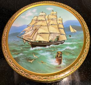 Denna gamla kakburk fyndade jag för 30kr. Den är tillverkad mellan 1948-1955. Det är ett danskt företag – Jacobsen’s Bakery Ltd – som gett ett annat företag i England i uppdrag att tillverka burkarna åt dom. Sen sålde Jacobsen’s sina kakor i dessa. Eftersom burken är i väldigt fint skick skulle jag uppskatta värdet till ca 2-300kr här i Sverige, men utomlands kan den gå för 4-600kr. Fynd!