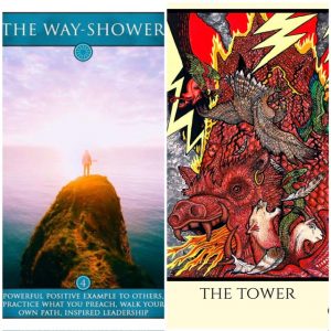 Kort 2 visar på en omvälvning som inte exploderar öppet utan sker mer stillsamt och inåt. Det kan handla om att du långsamt monterar ner gamla tankesätt, rädslor eller strukturer som inte längre håller. Kanske har du redan varit nära ett ”ras”, men istället för totalt kaos har du valt att förändra något steg för steg. Det kan oxå finnas ett visst motstånd mot förändring (en ovilja att släppa taget helt) men processen är ändå igång.