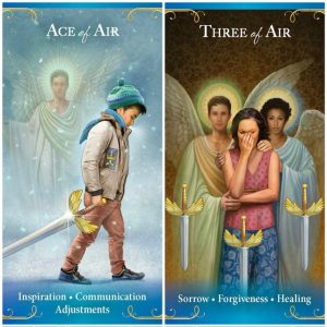 Kort 1 står för ett nytt sätt att tänka, ett nytt perspektiv eller något som vill sägas. Det handlar mycket om klarhet i huvudet: att något ”klickar till” – att du börjar förstå dig själv eller en person bättre. Kanske inser du att du behöver uttrycka någonting på ett ärligt sätt, eller justera hur du kommunicerar – både med andra och med dig själv. Det är som att det blåser in friska vindar efter en tid av stillastående. Kort 2 säger att det här nya tänkandet hänger ihop med känslor som varit tunga – sorg, besvikelse eller gamla sår som fortfarande gör ont. Kortet pekar tydligt mot förlåtelse och läkning i det här fallet. Änglarna säger att du inte är ensam i den här processen, även fast det känns svårt.