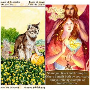 Kort 2 säger: du behöver inte vara färdig, perfekt eller helt säker för att vara värdefull. Ditt ljus kommer inte av att du har alla svar, utan av att du vågar vara äkta. Det du har gått igenom (både snedsteg och framsteg) är inte något som ska döljas, utan något som faktiskt kan hjälpa andra. När du delar din resa (även de svåra och röriga delarna) så händer något läkande, både för dig och för omgivningen.