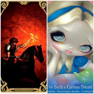 Kort 2 handlar om att komma tillbaka till verkligheten. Kanske du har tappat bort dig lite i dina tankar eller i en idé som inte riktigt stämmer med hur det faktiskt är. Det kan vara att du har målat upp en bild i huvudet (av en person, en situation eller av framtiden) som inte riktigt håller i verkligheten. Eller så drömmer du så mycket att du skjuter upp det som behöver göras här och nu. Kortet påminner om att det är dax att vakna lite och se saker och ting som de faktiskt är.