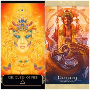 Kort 1 har en stark, självsäker och skapande energi. Queen of Fire symboliserar passion, livsglädje och modet att vara sig själv fullt ut. Det är någon som vågar uttrycka sin energi, sina idéer och sin personlighet utan att hålla tillbaka. I vardaglig mening kan det handla om att du just nu står i  (eller är på väg in i) en period där din egen drivkraft och kreativitet vill ta mer plats. Du kanske känner en lust att göra saker på ditt sätt, följa det som känns inspirerande och inte bara det som känns förväntat.