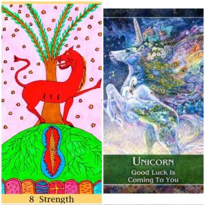 Kort 1 handlar inte om att vara stark fysiskt, utan om inre styrka, och att ha ett lugn inom sig. Det handlar om att kunna vara sig själv och stå stadigt även när man känner sig rädd, osäker eller när saker och ting är jobbiga runtomkring. Kortet visar oxå att du kan lita på din magkänsla och din kropp, för du känner ofta innerst inne vad som är rätt för dig. Och viktigast av allt: du har redan det du behöver. Du behöver inte bli starkare eller förändras för att klara det du går igenom, för du är redan tillräcklig som du är.