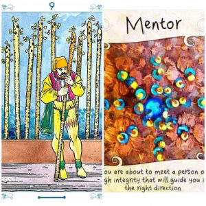 Kort 2 antyder att du inte behöver fortsätta ensam. Det finns någon (eller så kommer det in någon) som kan guida dig, ge perspektiv och hjälpa dig att sortera vad som är viktigt att hålla fast vid och vad du kan släppa. Det här kan vara en ny person, men oxå någon du redan har i ditt liv som du kanske inte har lutat dig mot ännu.
